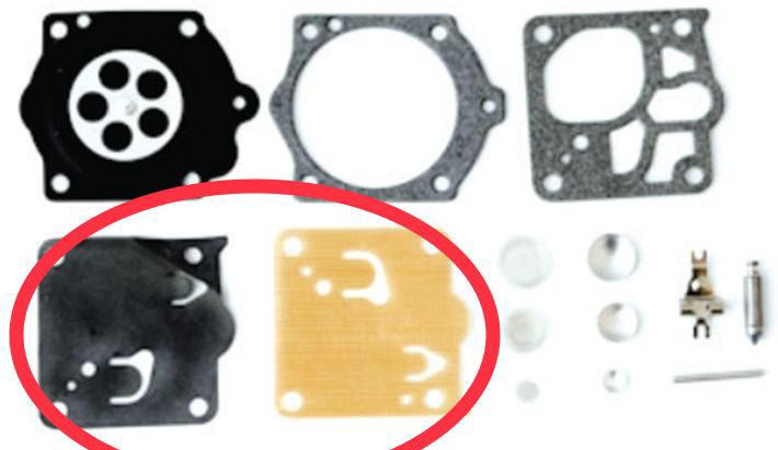 (a) carb gasket kit which contains only the diaphragm, pumper membrane and gaskets, and